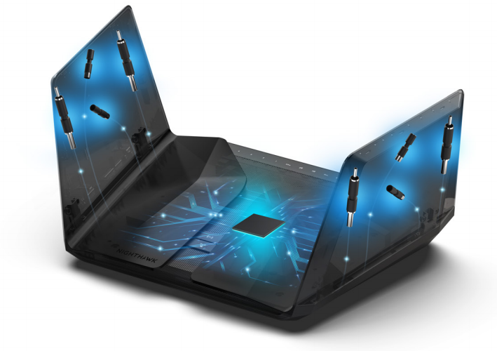 This next-generation Nighthawk Tri-Band AX12 WiFi 6 Router router design conceals eight (8) high-performance antennas under the ‘wings’. The antennas are optimally positioned for best WiFi performance and extend strong and reliable WiFi coverage indoors and outdoors.